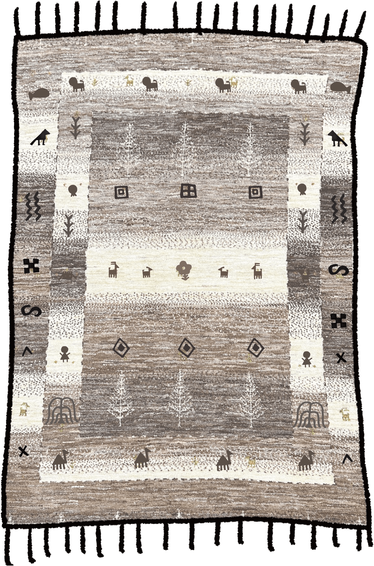 デザイン画がないギャッベは「遊牧⺠の⽇記」とも呼ばれ、その⽇常や伝統を描いていると⾔われています。
